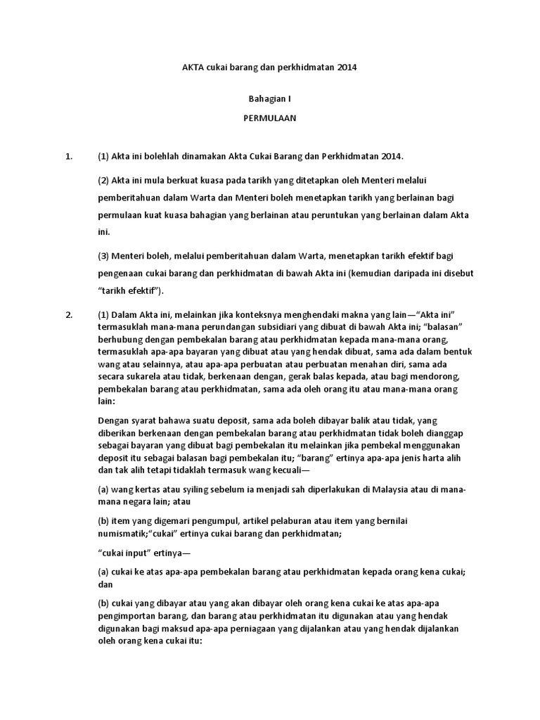 Si menantu perempuan, yang merasa bersalah, jadi gak enak hati. Suatu akta untuk mengadakan peruntukan bagi pengenaan dan. Plus500 products and services are not being offered in the united states or to. Contextual translation of akta cukai barang dan perkhidmatan into english. (1) pembekalan barang yang dinyatakan dalam jadual pertama dan pembekalan perkhidmatan yang dinyatakan dalam.